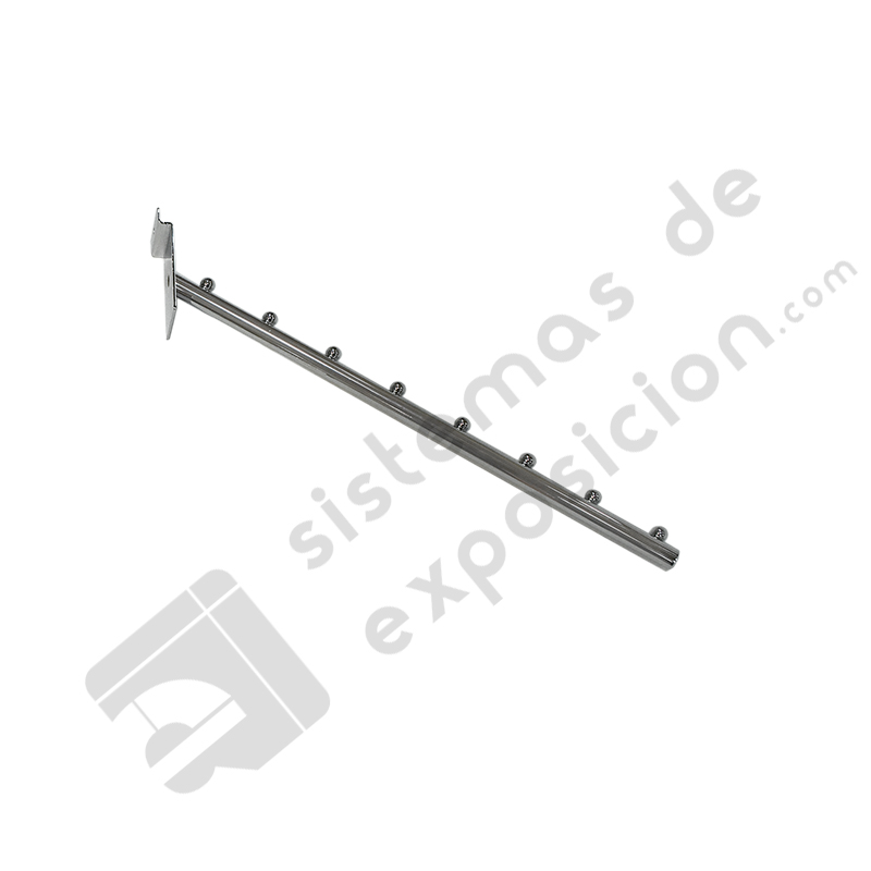 Tubo cromado ovalado plano y resistente. Ideal para mostrar y soportar el peso de varias prendas, con múltiples topes de bola para espaciar sus productos.