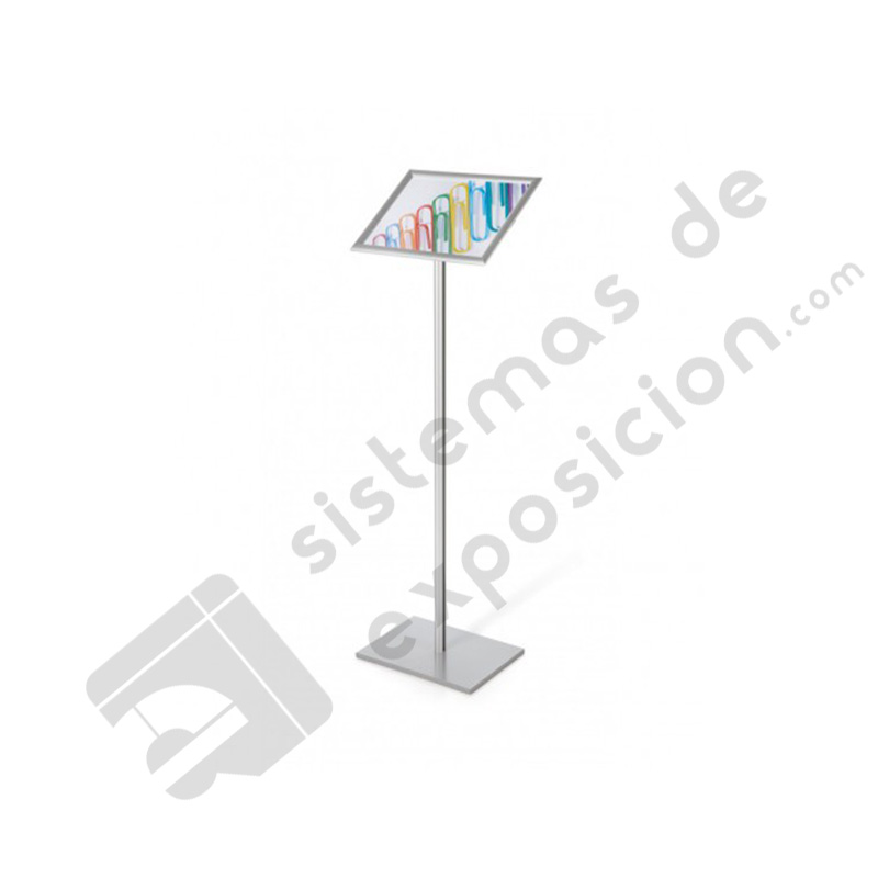 Atril expositor de aluminio con marco abatible. Muy util para exponer información, catálogos, menús...