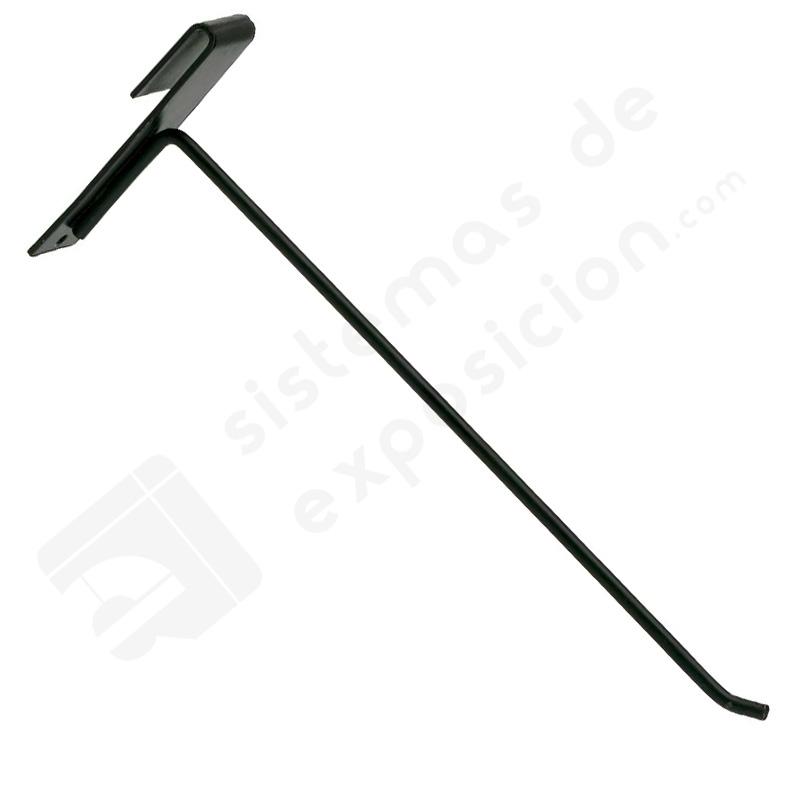 Accesorio indispensable para colocar en panel de rejilla, muy útil en tiendas de ropa para exponer lo último en tendencias. En exposiciones para colgar cuadros, es un instrumento útil para varias ocasiones.