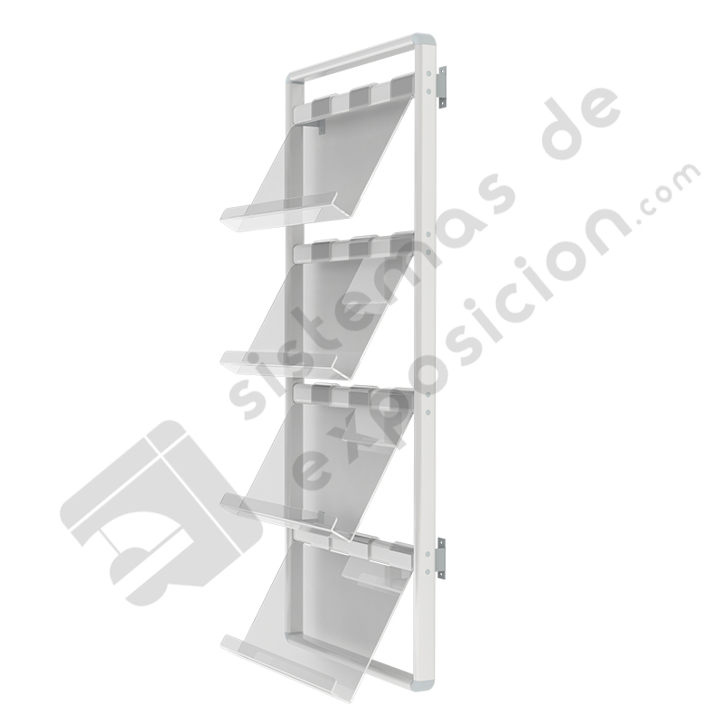 En este soporte de pared se puede exponer, cualquier tipo de publicidad, propaganda, imágenes, folletos, catálogos, carteles, fotos, libros, folios, revistas, periódicos, trípticos publicitarios.