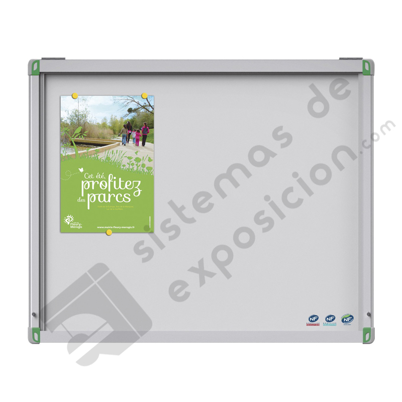 Vitrina magnética con marco de aluminio y cristal templado, para uso exterior en paredes y tiene cerradura para mantener la información segura y es  impermeable a la lluvia. Además se puede escribir sobre su superficie.